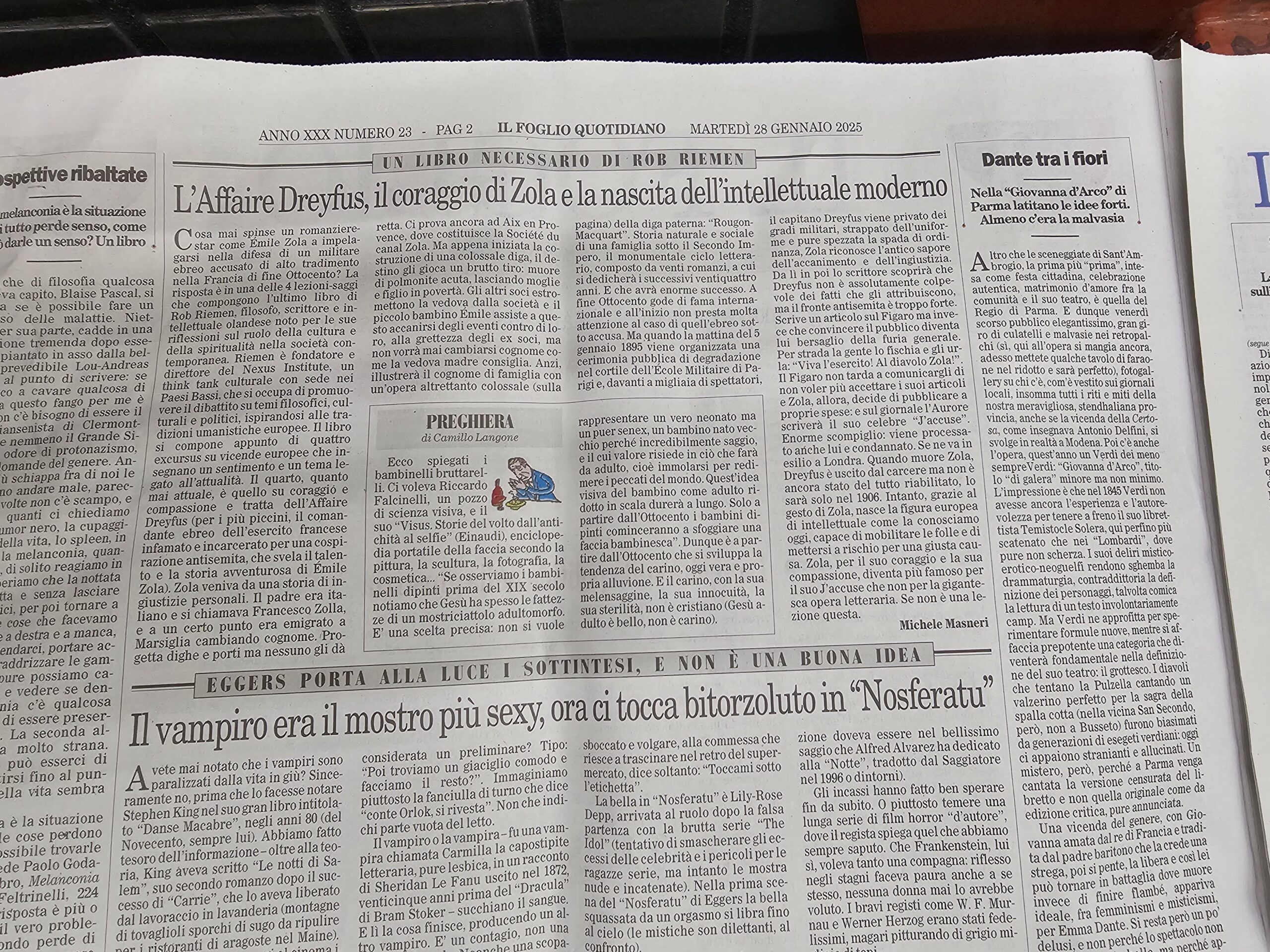 ‘Il libro necessario di Rob Riemen’ was the headline of Il Foglio announcing L’arte di diventare umani on its publication date, 28 January 2025.